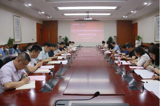 6月27日下午,西安培华学院在明德楼第一会议室召开党委理论中心组学习会议,重点学习了“陕西省第十四次党代会精神”“习近平总书记给南京大学留学归国青年学者重要回信精神”“反有组织犯罪法”等重要内容,中心组成员在会上进行了学习交流发言。党委理论学习中心组成员,各学院党委(党总支)书记、副书记,直属党支部书记、副书记,党务干事参加学习,校党委书记罗新远主持会议。