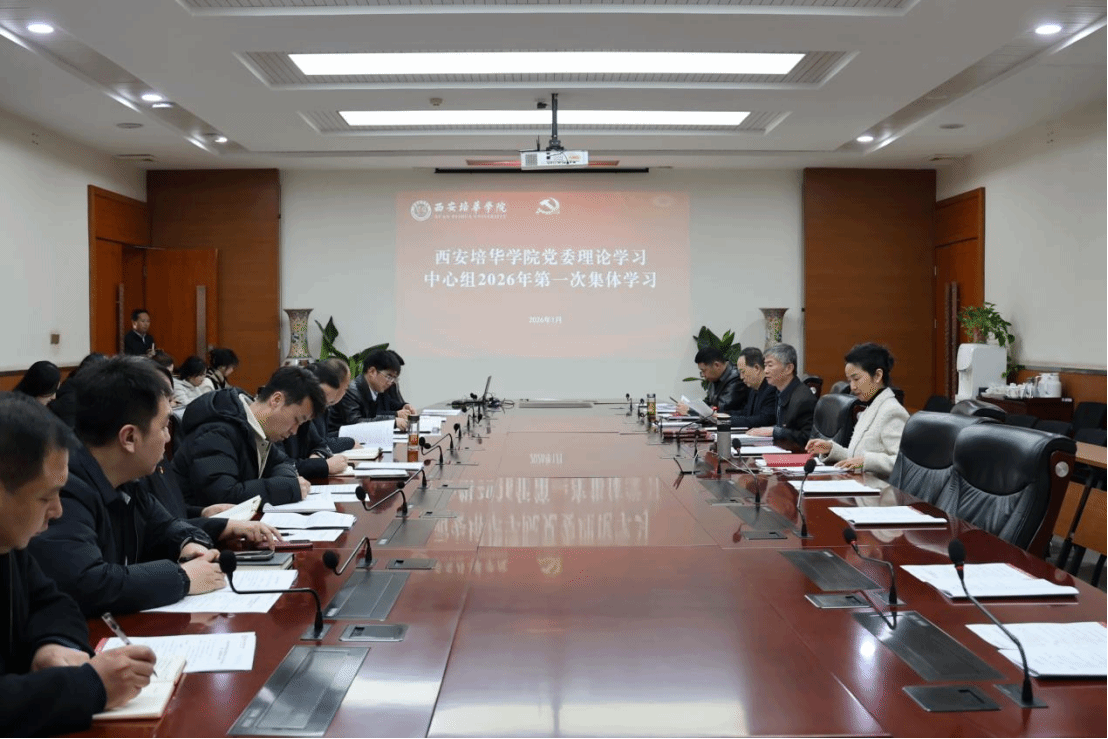 1月14日下午,西安培华学院党委理论学习中心组在明德楼第一会议室举行2026年第一次集体学习会。本次学习旨在深入学习贯彻习近平新时代中国特色社会主义思想,全面贯彻落实党的二十届四中全会精神,紧扣“以打攻坚战、持久战的决心和恒心,锲而不舍落实中央八项规定精神,推进作风建设常态化长效化”的民主生活会主题,为开好年度民主生活会打下坚实思想基础。会议由校党委书记刘锋主持,校党委理论学习中心组成员(含全体党委委员、纪委委员),各学院党委(党总支)书记、副书记,直属党支部书记、副书记,党务干事参加学习。