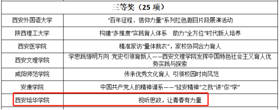 其中西安培华学院《视听思政,让青春有力量》获得三等奖。