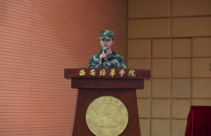 二营五连连长田祖平同学代表全体教官发言,郑重表达了将全情投入本次军训工作的信心和决心。她表示要以良好的军人形象,过硬的军事素质,完成好此次军训任务,以饱满的热情和严谨的态度投入到训练当中;认真履行教官职责,发扬不怕苦,不怕累的精神,严格按照军训计划,科学施训,确保同学们在安全的前提下,得到充分的锻炼和提高;想同学之所想,帮同学之所需,让每一位新同学在军训中收获自信、收获友谊、收获成长。