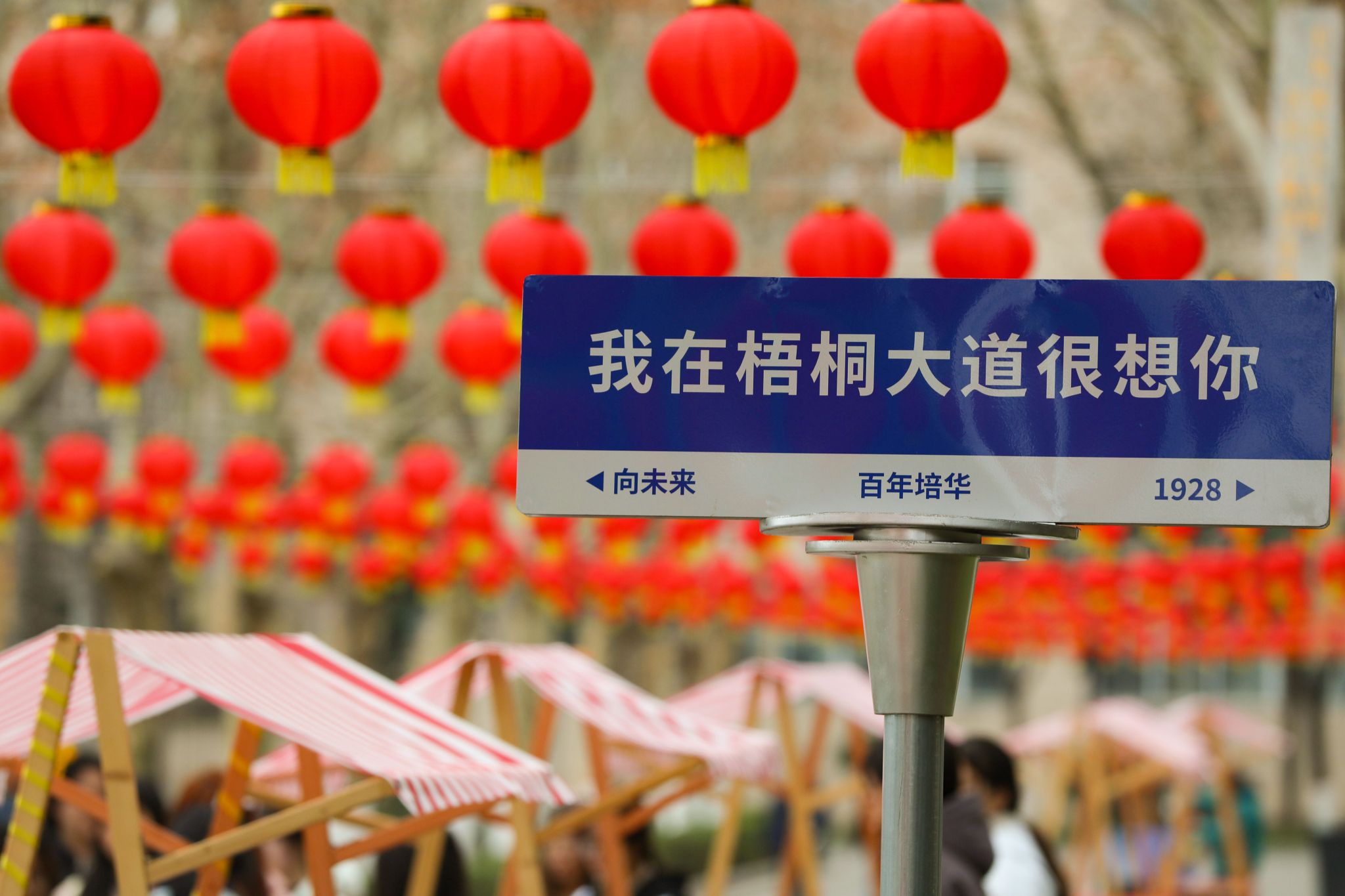 从金秋硕果到元宵灯火,2025年那个秋天,我们在梧桐大道漫步、看落叶铺金,感受梧桐大道的诗意与浪漫。2026年元宵节,梧桐大道换新装——近千盏红彤彤的灯笼挂满枝头,与初春的嫩芽交相辉映。漫步于此,感受从“秋收”到“春祈”的美好变迁。