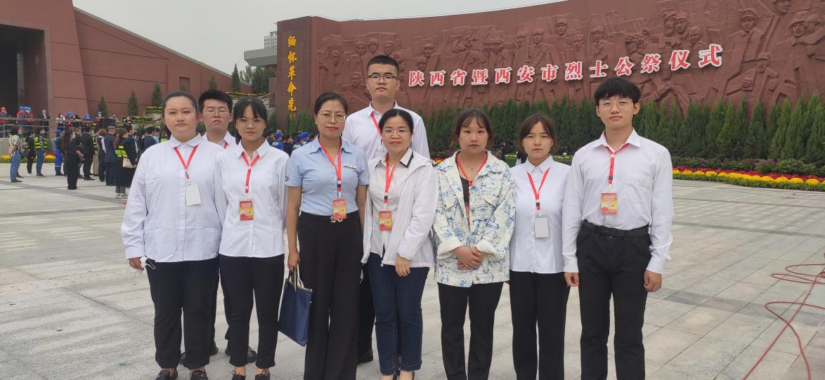 In order to successfully complete this work, a team of teachers and students arrived at the Xi’an Martyrs Cemetery at 2 pm on the 28th for rehearsal work. Under the guidance of Section Chief Liu of the Commendatory Section in Xi'an Martyrs Cemetery, the students had a clear division of labor and performed their duties. The teachers and students arrived at the Martyrs Cemetery on time at 8 am on September 30 and rehearsed the two activities again. It was precisely because of the meticulous rehearsal and drills of Section Chief Liu, Teacher Zhao and seven students that ensured the smooth development of the Public Sacrifice of Martyrs at 10 o’clock on September 30.
