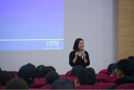 Shu Hampson, the Regional Manager of Henley Business Schoolthanked the students for attending the presentation session. She emphasized that mastering English is the key for students to open doors to the world, broaden their international horizons, and enrich their life experiences. She introduced the academic background, global ranking, andbasic informationof Henley Business School, as well as an overview of the school's finance program and master programs of Henley Business School.