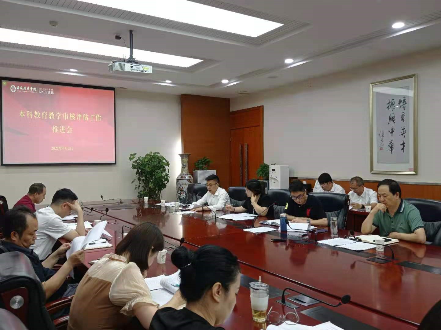6月2日下午,学校召开本科教育教学审核评估工作推进会。常务副校长胡俊生、各二级学院及职能部门主要负责人参加了会议。会议由教务管理中心主任、评估建设工作办公室副主任铁卫主持。