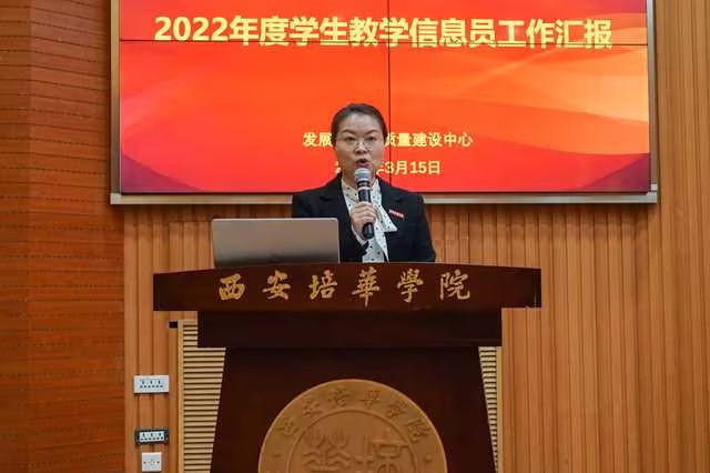 发展规划与质量建设中心主任赵巍宣读了西安培华学院关于表彰2022年度优秀学生教学信息员的通报。