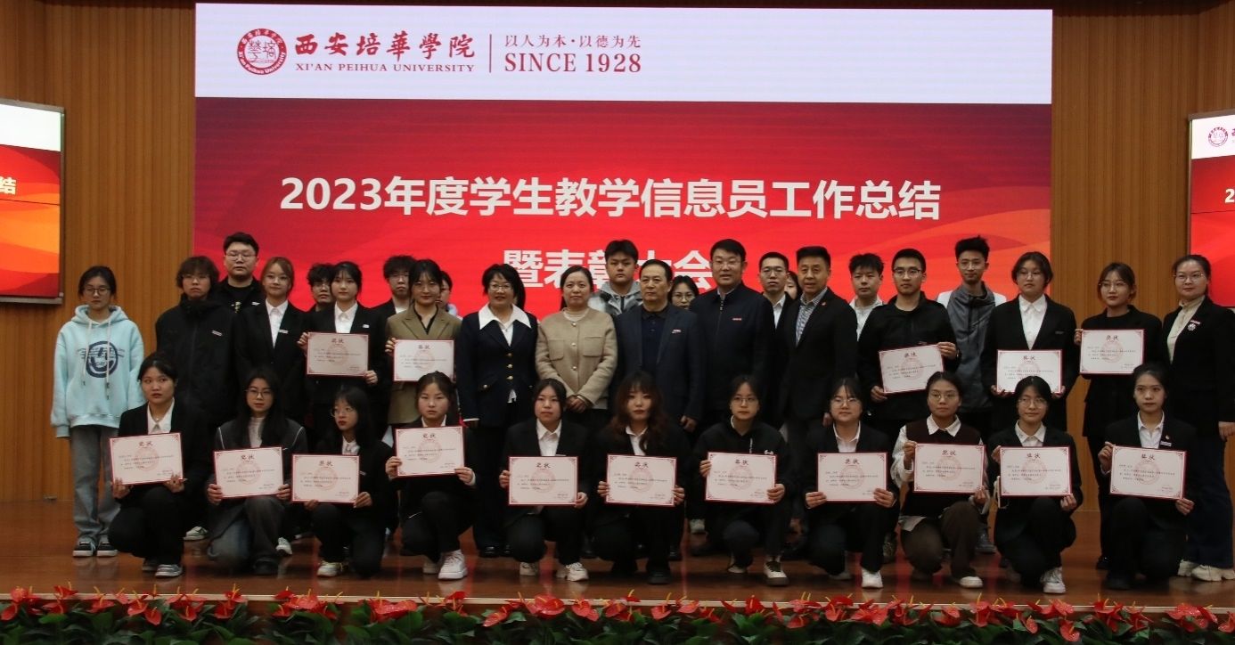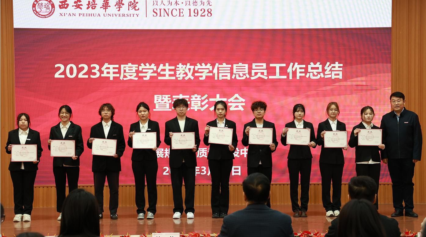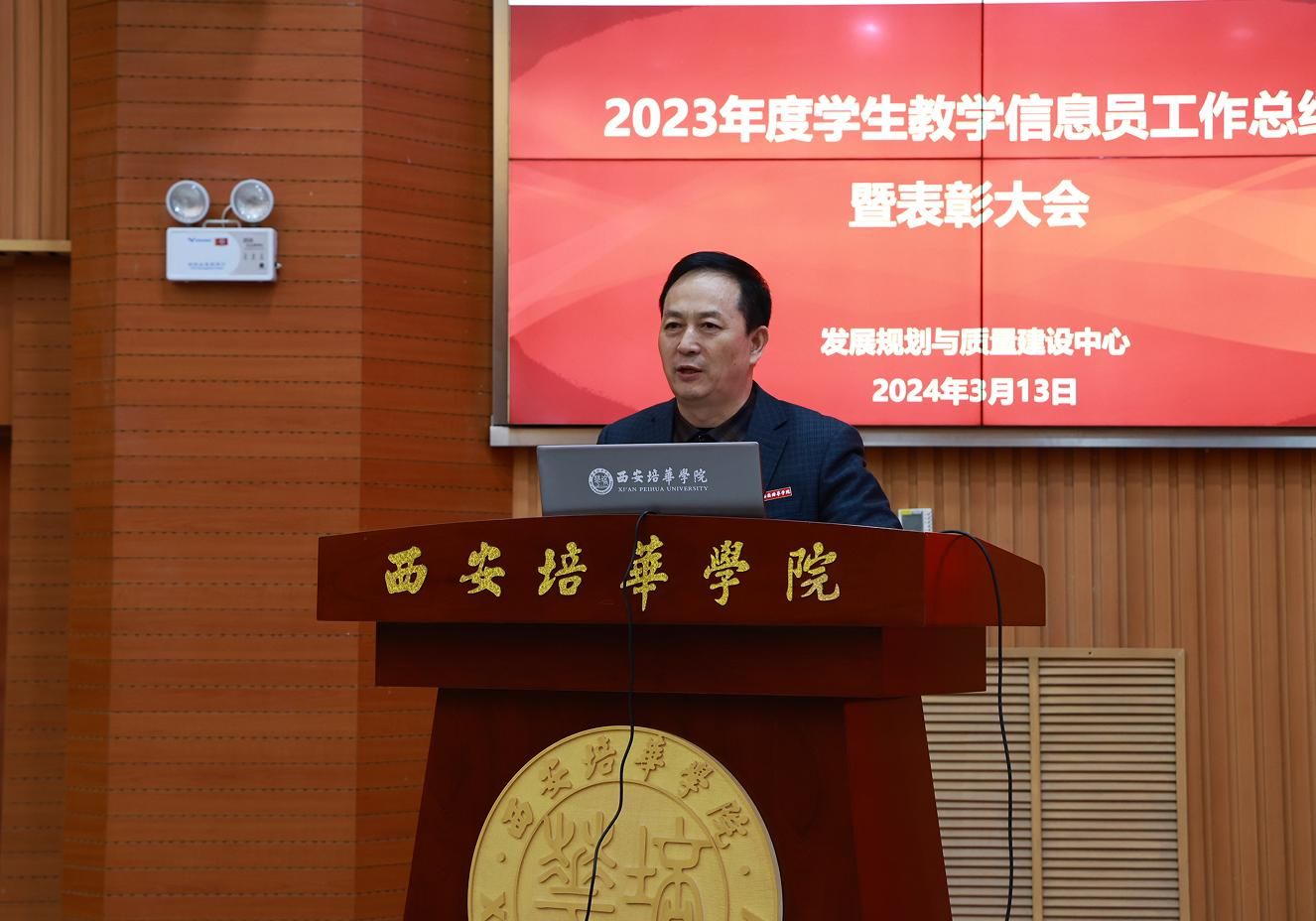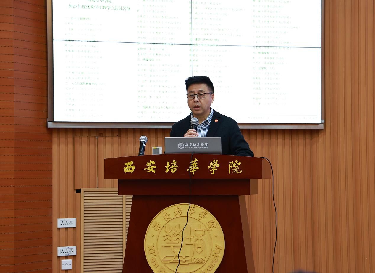 发展规划与质量建设中心主任赵巍宣读了《西安培华学院关于表彰2023年度优秀学生教学信息员的通报》。在热烈的掌声中,常务副校长胡俊生、校长助理鲍伟为优秀学生教学信息员代表颁发了奖状。