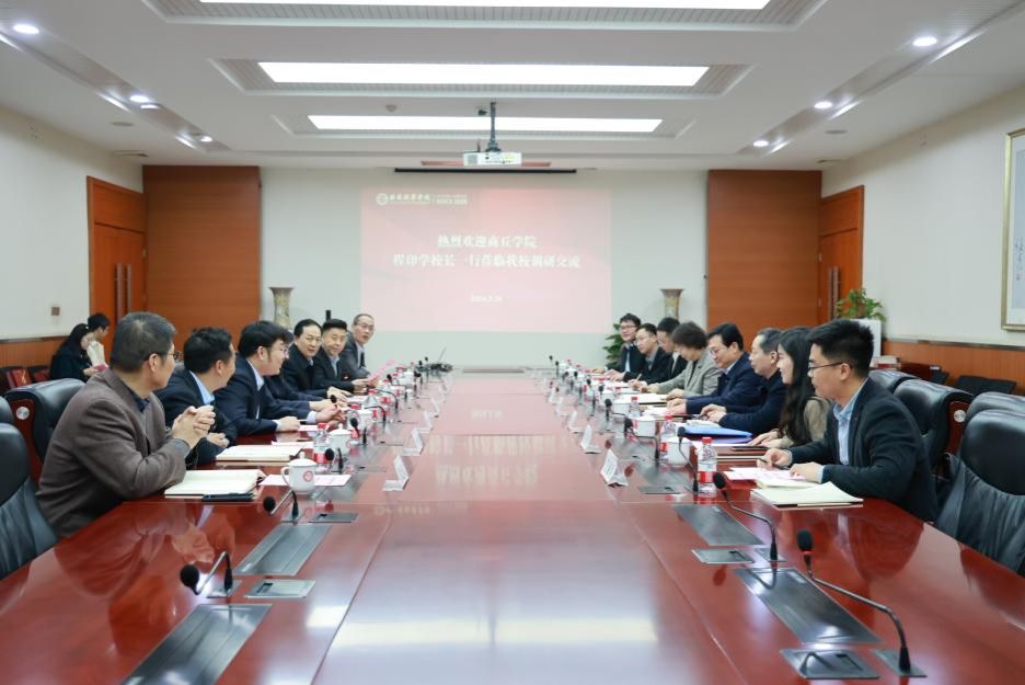 3月26日下午,商丘学院校长程印学一行8人来我校调研交流。我校校长李映方、常务副校长胡俊生、校长助理鲍伟、校办主任李健、发展规划与质量建设中心主任赵巍、人力资源中心主任罗北荣、教务管理中心副主任王琳参加了交流会。