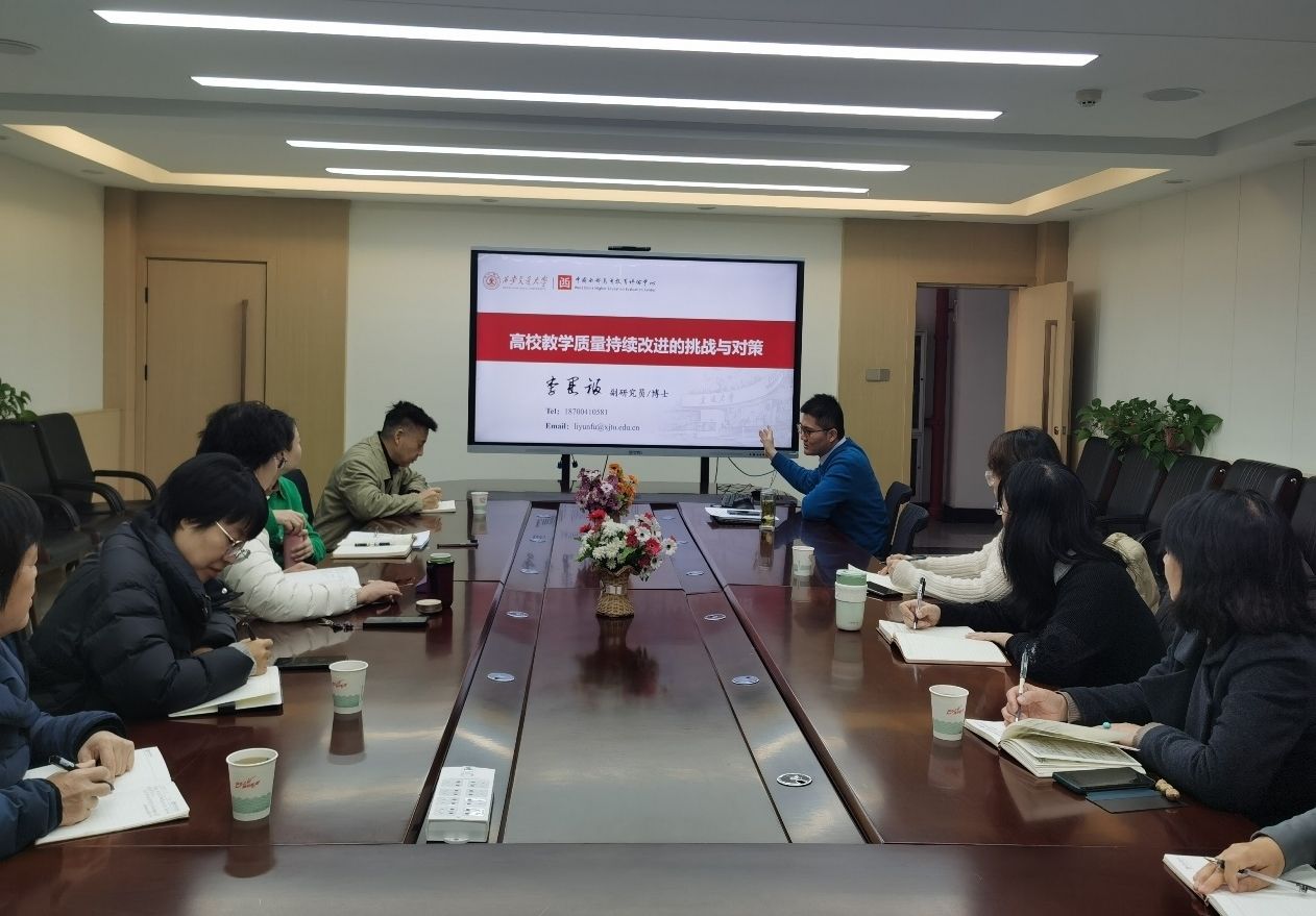 我校邀请西部评估中心李运福博士,于2024年12月15日上午在明德楼第三会议室作题目为“高校教学质量持续改进的挑战与对策”的专题讲座。发展规划与质量建设中心主任赵巍、主任助理全婧、校院两级督导专家代表及相关工作人员参会,讲座由发展规划与质量建设中心主任助理全婧主持。