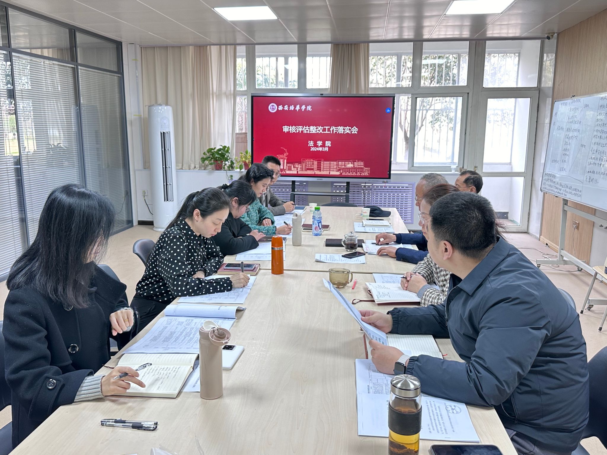 为切实推进学校本科教育教学审核评估整改工作落实,2024年3月18日,法学院党政联席扩大会议—审核评估整改工作落实会在1116会议室召开,学院领导班子、督导组组长和各教研室主任参加了会议。