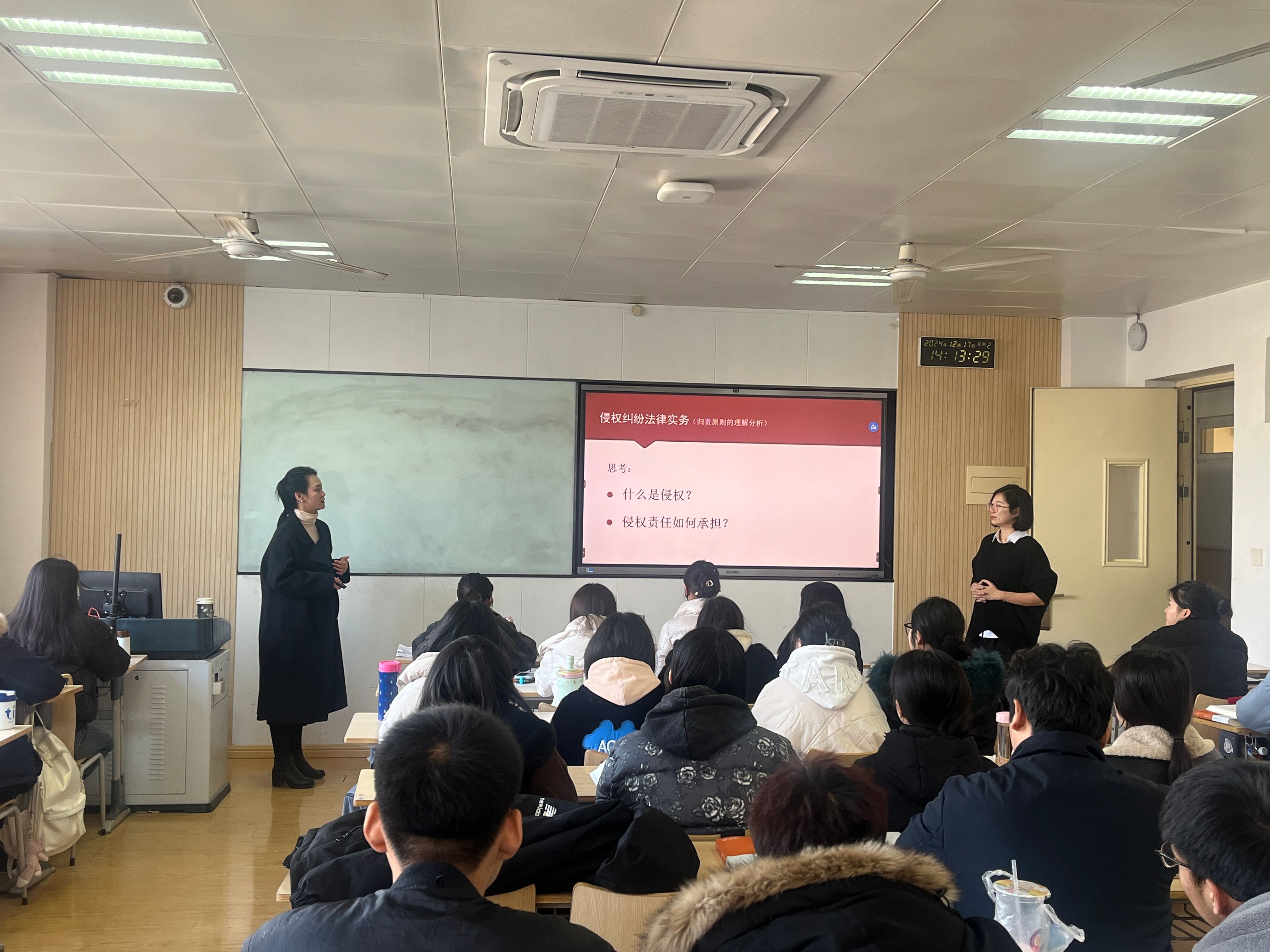 随后,任宇律师以“侵权纠纷法律实务”为主题,对侵权责任归责原则的实践运用进行了实务模拟,她采取“思考先行,身份代入,以案开篇”的方式,带领同学们以律师身份走进案件,感受律师代理案件的基础逻辑和着手点。在此基础上,任律师用一系列侵权典型案例,通过案例分析,引导同学们学会“分析案件事实,寻找法律依据,研判代理方案”的律师工作思路。