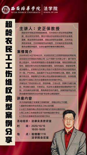 为助力师生厘清劳动争议维权要点,2025年10月15日,我院法律实务教研室于格物楼1116会议室举办劳动法典型案例研讨活动。本次活动由史正保教授主讲,法律实务教研室教师及学生代表参与活动。