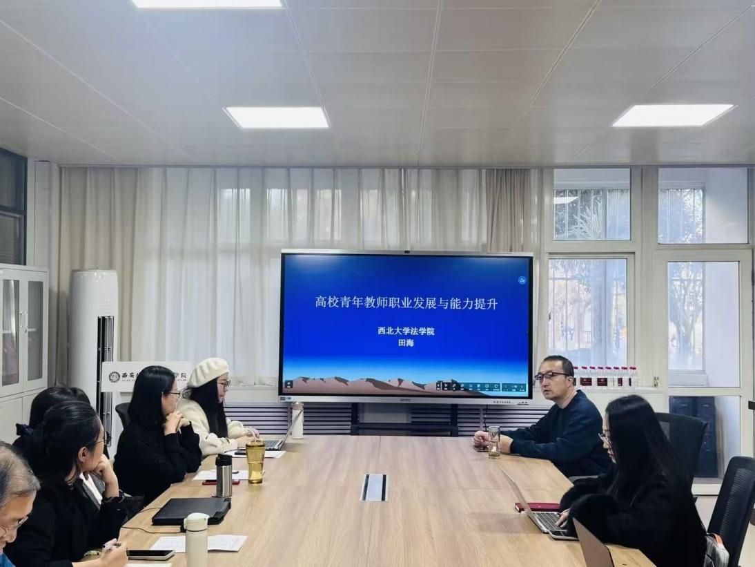 为深入落实《西安培华学院青年教师双导师制工作实施办法》,强化青年教师协同培养机制,2025年11月27日下午,西安培华学院法学院特邀西北大学法学院副教授田海围绕“高校青年教师职业发展与能力提升”做主题讲座,法学院全体教职工参加。