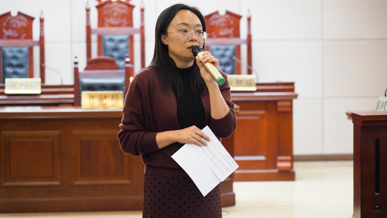 她首先肯定了该队在模拟法庭还原程序与完整度方面的出色表现,指出其对整个庭审流程的把握较为准确,能够将理论知识较好地转化为实践操作。
