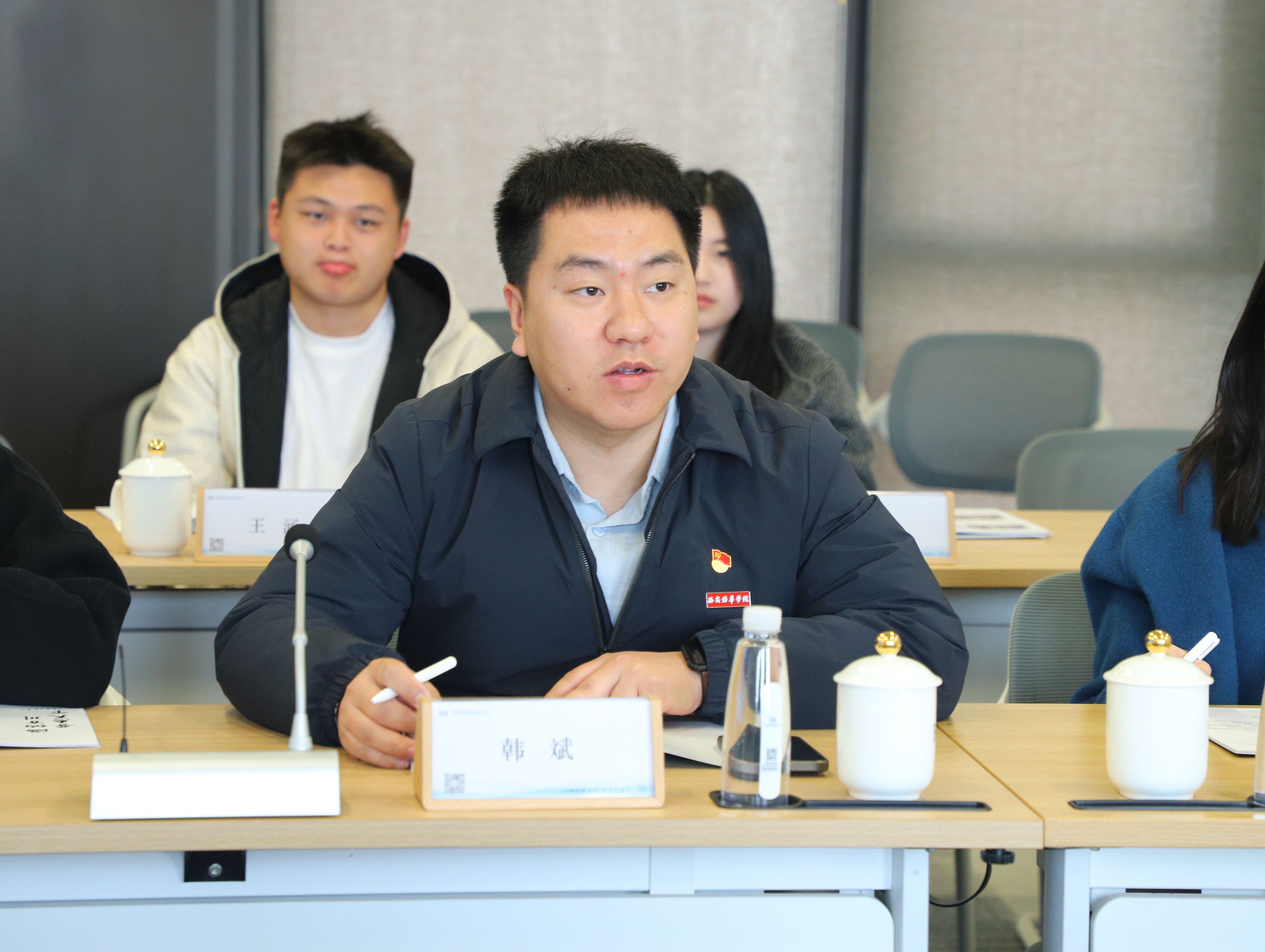 座谈环节以《海魂颂》《正义之光》两部先导片开场。随后,金韬副书记结合宣传片内容,从发展改革、组织架构、党建与公益活动等维度阐述律所党委党建工作。金韬提到,律所将党建融入管理,积极投身公益,充分发挥了党组织引领作用。同时表达了对双方在学生人才培养、实习就业、大学生职业发展导航等领域加强合作的期待,期望实现互利共赢。