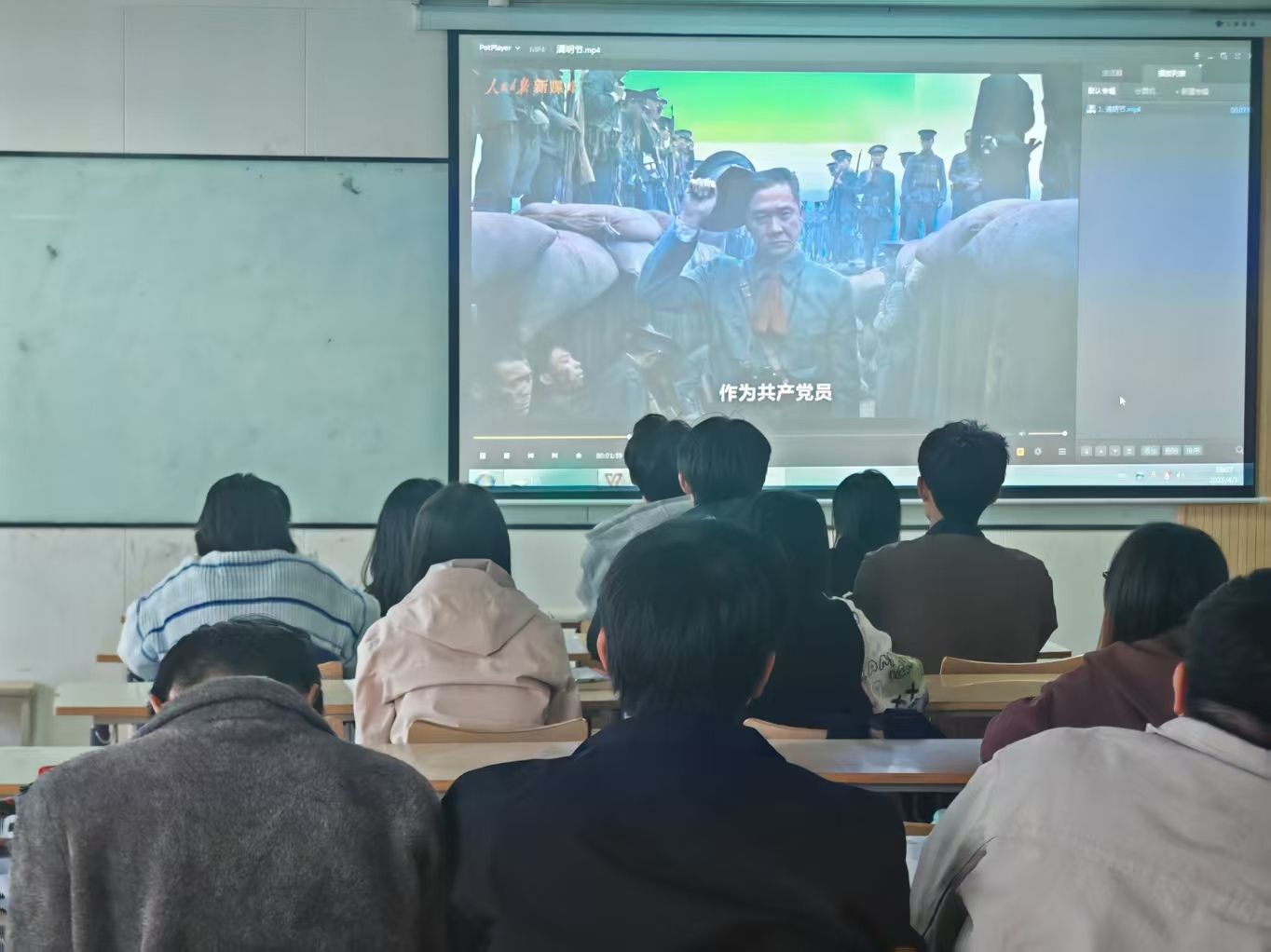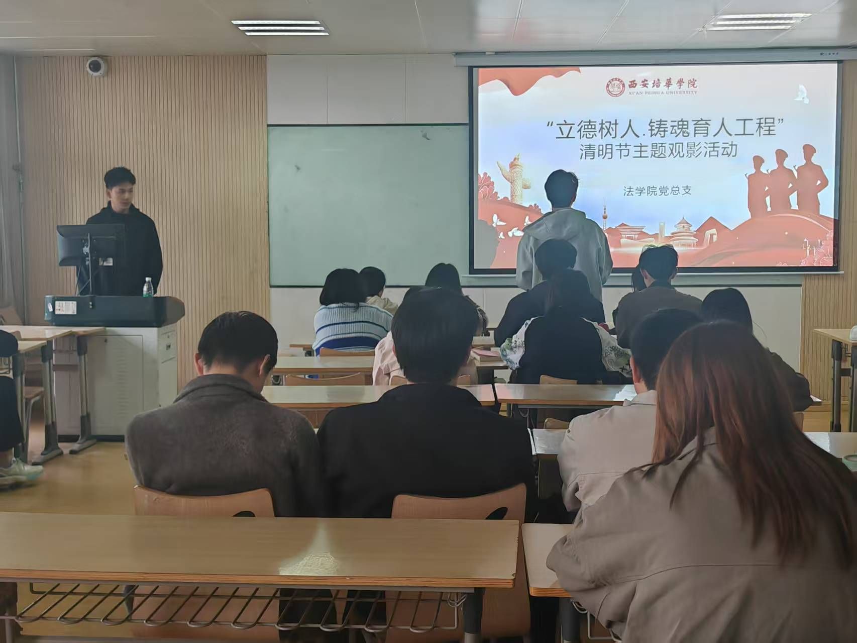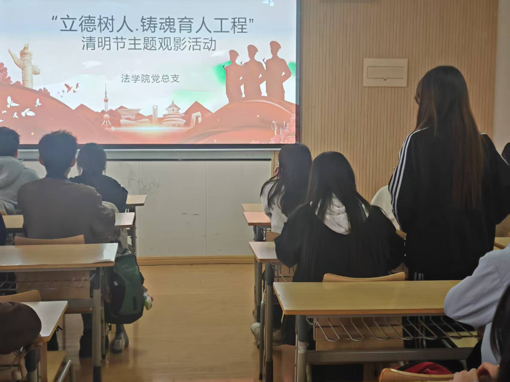 为引导学生缅怀革命先烈,弘扬爱国主义精神,积极践行社会主义核心价值观、传承红色基因的浓厚氛围,使文化沁润教育,法学院党总支开展了“立德树人·铸魂育人工程”系列教育实践活动。2025年4月2日18:00,法学院党总支组织51期入党积极分子在2616教室开展清明节爱国主义主题观影活动。