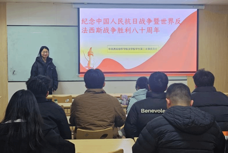为纪念中国人民抗日战争暨世界反法西斯战争胜利80周年,引导广大党员铭记历史教训、传承民族精神、赓续红色血脉,强化党员思想政治引领,筑牢为实现中华民族伟大复兴而奋斗的理想信念,法学院学生第三党支部于11月24日18:00精心组织开展“铭记历史·砥砺前行——纪念中国人民抗日战争暨世界反法西斯战争胜利80周年”特色党日活动,以沉浸式学习实践凝聚奋进力量。