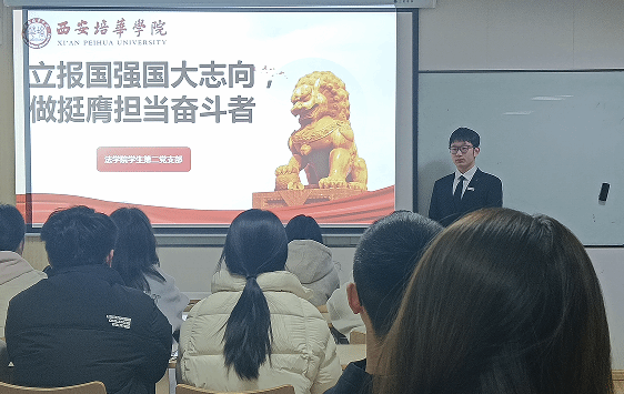 为深入贯彻落实高校“立报国强国大志向 做挺膺担当奋斗者”宣传教育要求,引导学生党员坚定理想信念、厚植家国情怀,11月20日18:00,法学院学生第二党支部在格物楼1607教室组织开展主题党日活动。活动特邀法学院习近平新时代中国特色社会主义思想宣讲团成员高宇翔同学作专题宣讲,支部全体党员参加。