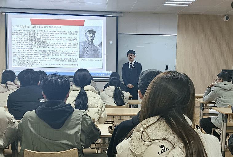 宣讲中,高宇翔同学以抗日英雄左权将军的光辉事迹为主线,深情讲述了左权将军在民族危亡之际坚守信仰、运筹帷幄、舍生忘死投身抗战的感人故事。从指挥千军万马到掩护战友突围,一个个真实细节生动诠释了革命先辈“为国家谋复兴、为人民谋幸福”的初心使命,深深触动了在场每一位党员的心灵,进一步夯实了大家的理想信念根基。