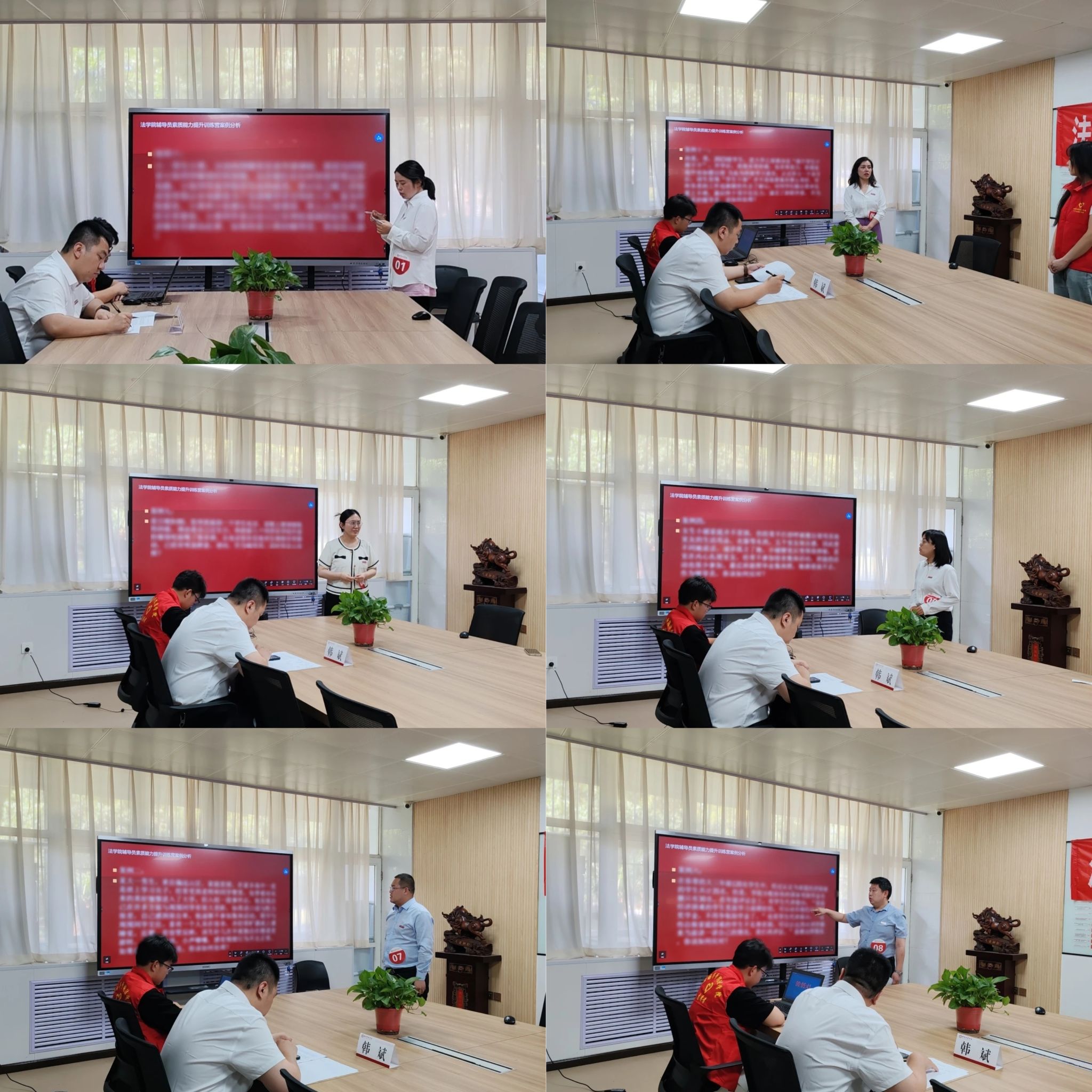 法学院党总支书记兼行政副院长韩斌对辅导员在比赛中的表现做了点评和总结,本次训练涵盖了思想理论教育和价值引领、日常管理、网络思政、心理健康、班团建设、大学生就业和学风建设等多个方面,以赛促学开拓思路,观点碰撞,有助于切实提高全体辅导员老师的理论水平、职业能力、专业素养。在日常工作中要坚持落实立德树人根本任务,始终站在时代的前沿,努力成为学生成长成才路上的人生导师和健康生活的知心朋友。同时大家要与时俱进,不断修炼内功,继续提高自身能力,更好地开展学生教育管理和服务工作。做到立心铸魂、深入一线、精准施策,助力成才。