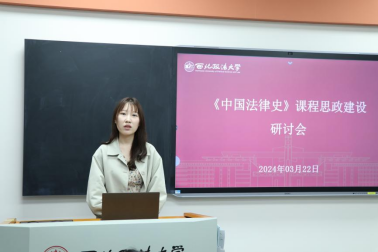 西安培华学院法学院王蕾老师也分享了自己在《中国法律史》这门课程中如何开展课程思政的做法,她表示,同学们要重视学好《中国法律史》这门课程,要为弘扬中华法文化,构建新时代的中华法系贡献青春力量;并也希望以后能同西北政法大学加强交流学习。