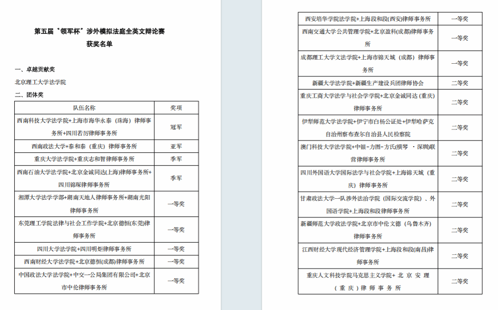 近日,由中国法学会法学教育研究会指导,中国法学交流基金会、重庆市司法局联合主办,北京理工大学承办的第五届“领军杯”涉外模拟法庭全英文辩论赛圆满落幕。西安培华学院法学院与段和段(西安)律师事务所联合组队参赛,凭借扎实的法律功底、流利的英文表达与出色的庭辩表现,最终荣获全国一等奖,充分展现了我院涉外法治人才培养的显著成效。