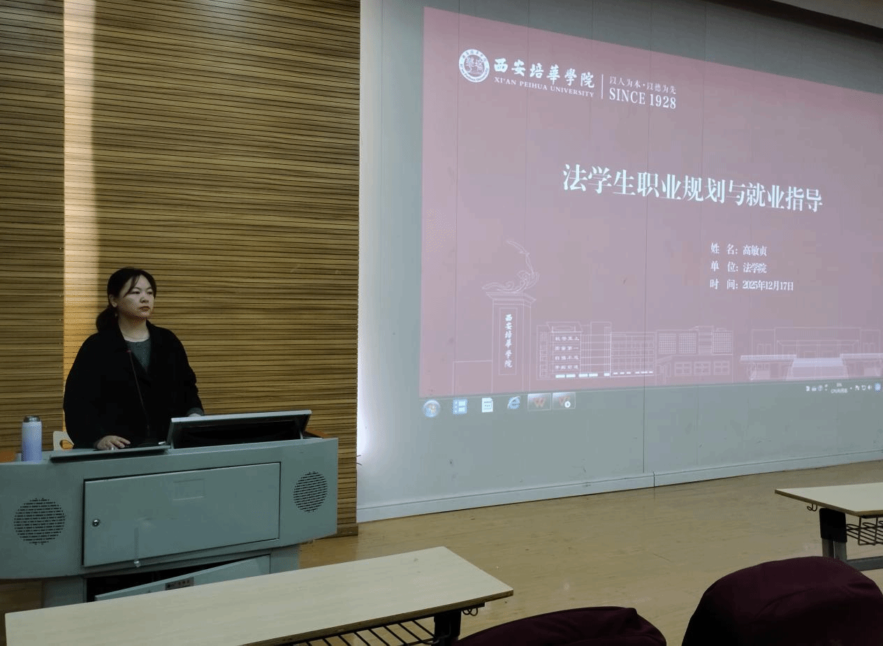 为帮助大二学生破解职业探索迷茫,明确法学专业就业方向与成长路径,12月17日下午,法学院公法教研室高敏贞老师与王彦鹏老师面向全体大二法学专业学生,在J102开展了主题为“法学生职业规划与就业指导”的专题讲座。讲座结合行业趋势、院校优势与学生实际困惑,为同学们带来了一场兼具实用性与指导性的职业发展指南。