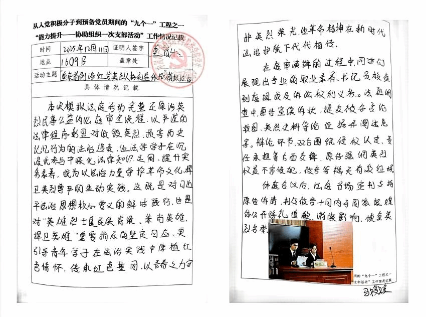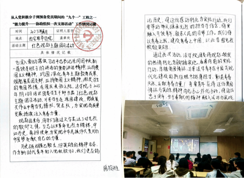 “九个一”工程中的能力提升篇,既是法学院党总支提升青年马克思主义者综合素养的核心举措,也是党团协同育人机制的具体实践,为培育有能力、勇担当的法治人才队伍奠定坚实基础!我们将继续带领青年学子以协助组织支部活动为成长契机,在投身支部建设、护航同伴进步中完善自我,以更积极的态度向党组织靠拢,矢志成长为堪当民族复兴重任的时代新人,为法学院党团建设提质与法治中国建设进程注入青春动能!