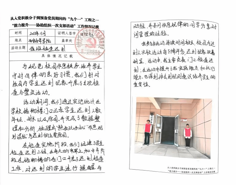 为深入贯彻落实新时代党员教育培养要求,法学院党总支以“九个一”工程为引领,以入党积极分子组织协调与综合服务能力为培育重点,打造“活动策划+落地执行+复盘优化”的全流程培养模式,引导全体积极分子、发展对象与党员深度投身支部活动筹备工作,实现能力与责任的双提升。能力提升篇聚焦青年学子成长,通过组织支部活动让其积累统筹经验,借服务同伴实践强化责任意识,着力锻造“善策划、会协调、强执行、有担当”的新时代青年马克思主义者,为法学院党团建设输送有活力、实干能干的先锋力量。让我们一同领略这些优秀篇章的风采!