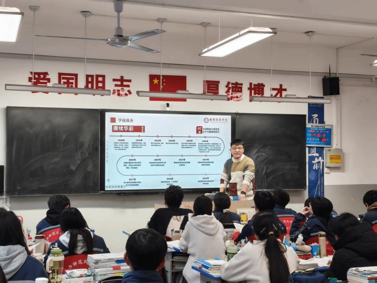 宣讲中,何其堃围绕培华法学专业的师资力量,重点介绍了法学专业的特色,通过展示法律实务视频与模拟法庭等项目成果,他详细阐释了学院在产教融合方面的实践,涵盖从法律文书写作、案例分析到创新创业大赛、律所法院实习等多元课程与实训平台,为高中生提供了对法学专业及大学生活的具象认知。