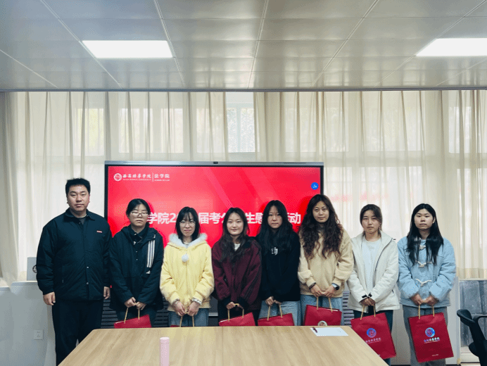 王院长寄语同学们,希望大家努力学习、取得好成绩,顺利加入公务员队伍,未来在岗位上发光发热。同时,祝愿同学们学习、生活、工作一帆风顺。最后,学院领导为在场学子发放慰问品,传递学校的关心与支持,极大鼓舞了同学们的备考士气。