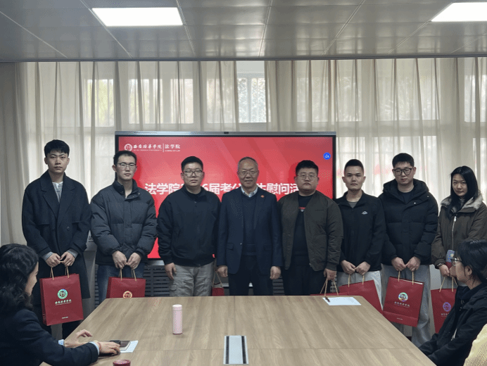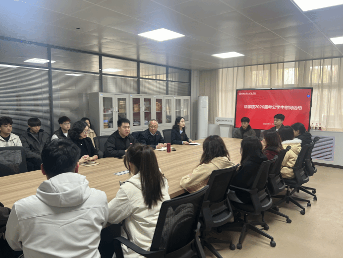 为切实关怀备考公务员的学子,鼓励我院2026届毕业生积极准备即将到来的公务员考试,3月6日14:00,学院组织开展考公学生慰问活动,法学院院长王鸿貌、院党总支书记兼行政副院长韩斌、院长助理高燕、郭淑君为同学们送上温暖关怀与诚挚祝福。