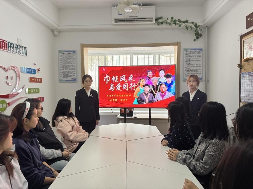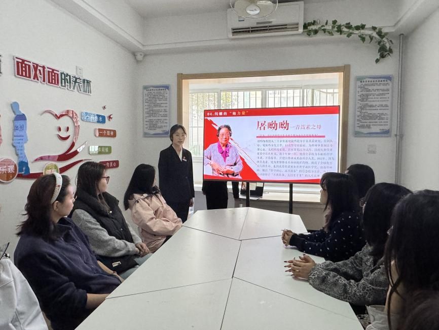在“闪耀的她力量”分享环节,信姝宇同学讲述了屠呦呦、黄文秀、樊锦诗、张桂梅等杰出女性的感人故事,她们在多个领域坚守初心、无私奉献,用行动诠释了新时代女性自尊、自信、自立、自强的精神内核。