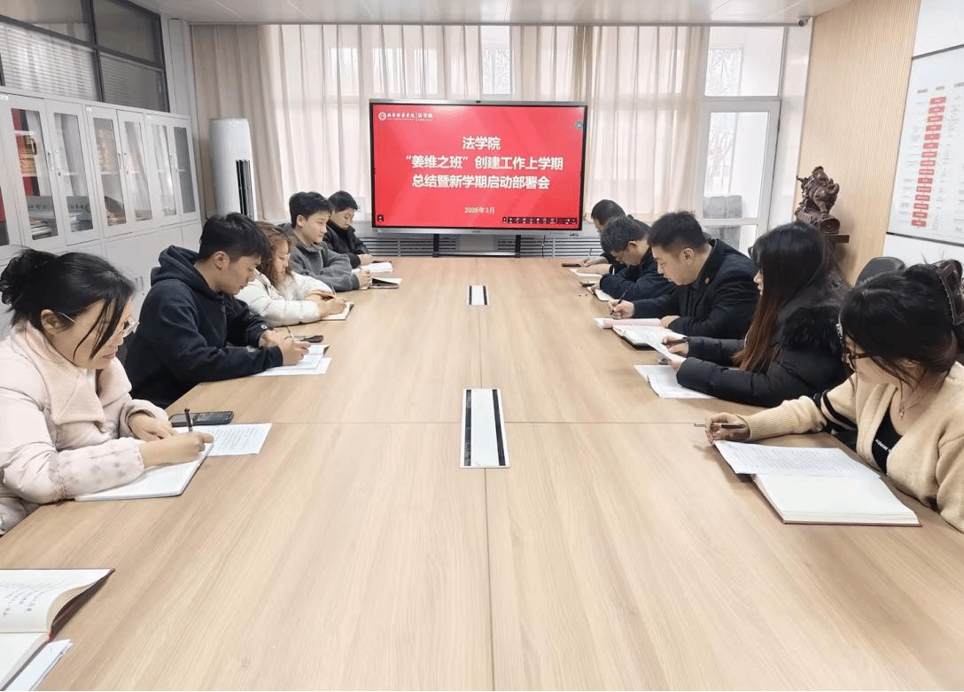 此次会议全面梳理了上学期创建工作成效,进一步明晰了新学期“姜维之班”创建工作的思路、重点与任务,为后续创建工作的有序、高效推进奠定坚实基础。下一步,法学院将以此次会议为契机,狠抓工作落实、深耕特色创建,持续推动“姜维之班”创建工作再上新台阶。在创建过程中,将紧密围绕学风建设核心要求,聚焦学生考研升学、学科竞赛、科研能力提升等关键指标,以学生增值赋能和班级整体跃升为“强本申硕”战略注入法学新动能。
