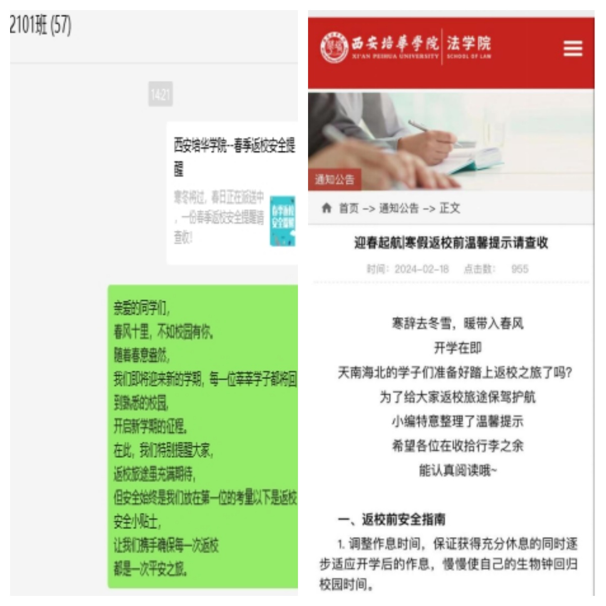我院官网为学生返校整理的温馨提示及班级群提示