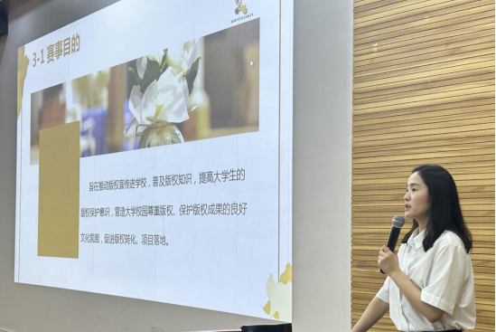 宣讲会上,大赛组委会的严咪老师首先介绍了大赛的背景和参赛细则。她强调,随着文创产业的快速发展,版权保护已成为产业发展的重要基石。本次大赛旨在通过演讲的形式,让青年学子深入了解版权知识,提高他们的版权保护能力,同时也为青年学子提供一个展示才华、交流学习的平台。