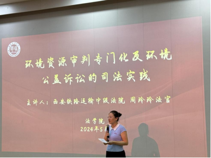讲座伊始,赵洁副院长代表法学院对西安铁路运输中级法院环境资源审判庭各位法官的莅临表示了热烈的欢迎和诚挚的感谢。同时,她强调了本次讲座的重要性,希望通过聆听周法官的讲解,全体师生能够从中吸取宝贵的知识,深入了解环境资源审判专门化的现状和未来发展趋势。