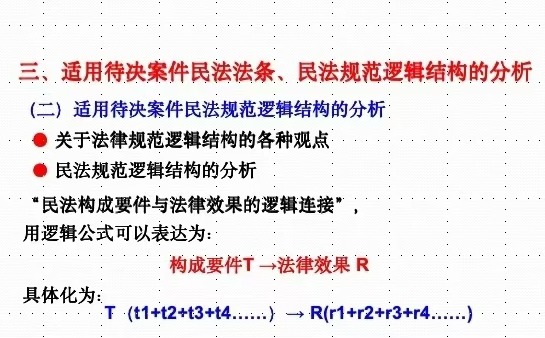 最后,赵教授讨论了民法规范在个案中适用的推理过程,包括民法推理大前提的确定、民法推理小前提的确定以及民法推理结论的确定与说明论证。他通过具体的案例分析,展示了如何将民法规范具体化为适用个案的“裁判规则”。