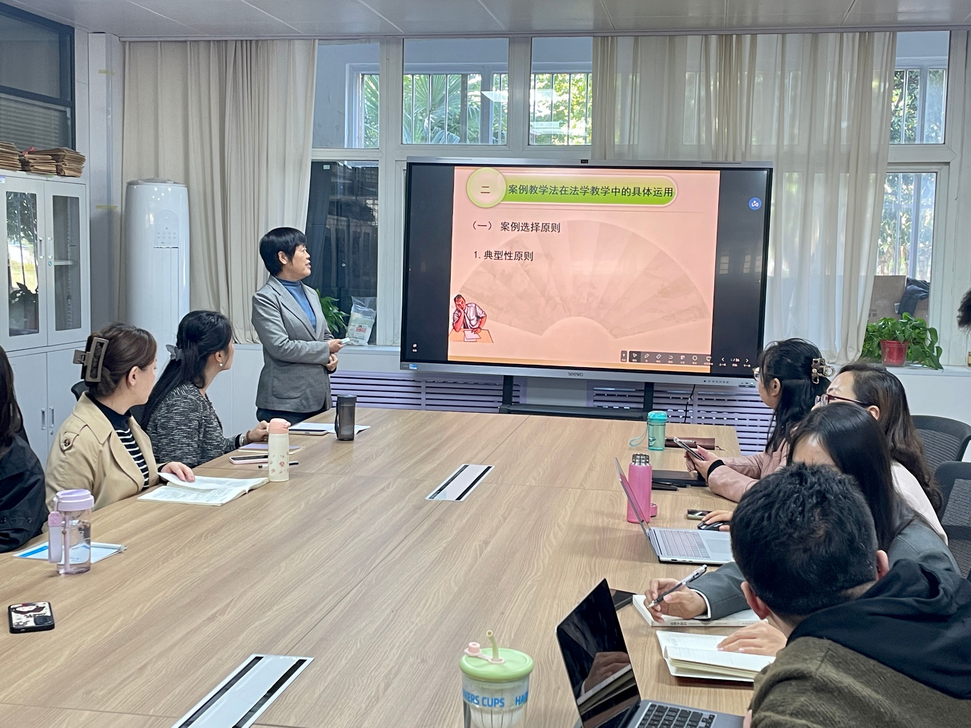 分享结束后,在座教师与凌教授对不同科目课程如何适用案例教学法问题进行了热烈探讨。理论教研室主任罗静老师认为,如何在有限的课时基础上,在课堂教学过程中进行案例讲解是需要老师们不断尝试训练的,对教材内容要学会有的放矢,灵活运用案例教学方式。高燕老师则以自身讲授的《民法总论》课程为例,认为民法案例与理论教学是相辅相成的。案例讲授要有针对性,使课堂环节案例的讲解发挥关键性作用,既能提高师生互动的有效性,也能对课堂内容进行优化。江欣燕老师结合本学期所讲授的《经济法》课程,对凌教授的分享表示受益匪浅,认为在今后的授课环节,会不断在当前个人固有的教学模式之外进行诸多尝试和创新。