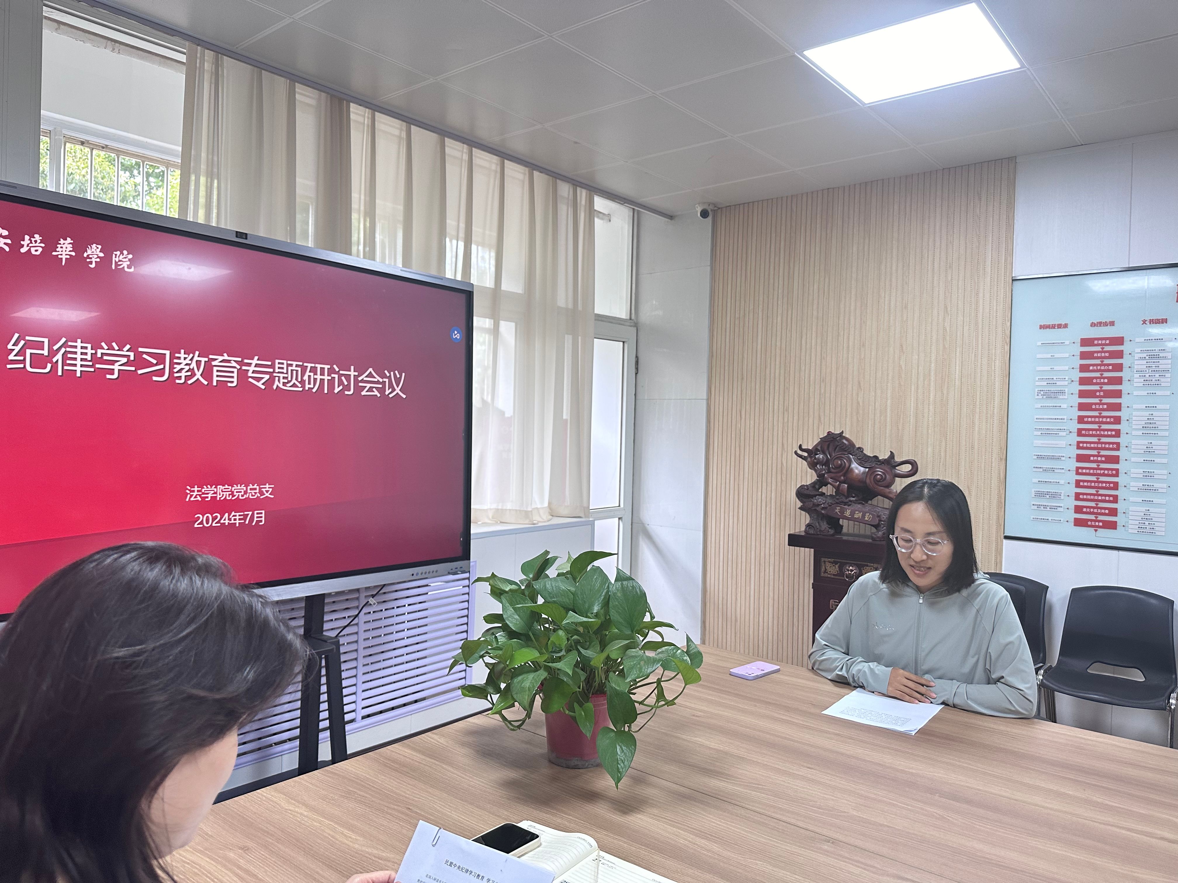 为深入贯彻落实习近平总书记重要讲话精神,学习借鉴正在全党开展的党纪学习教育做法,教育引导广大民主党派成员、无党派人士特别是领导干部筑牢法纪观念、增强自我约束意识,推动形成弘扬廉洁自律优良传统,认真学纪、严格守纪、严肃执纪的良好氛围,法学院党总支于7月2日在格物楼1116会议室开展了民主党派开展纪律学习教育。