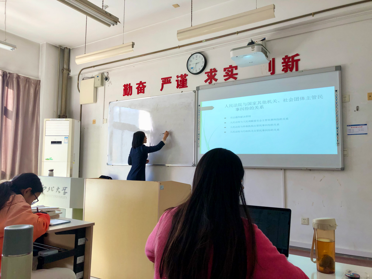 为进一步提高我院青年教师教学能力,全面提升教师教学水平,11月26日下午2:00,法学院私法教研室刘湘辰老师前往西北大学法学院观摩崔玲玲副教授的《民事诉讼法》课程,观摩课程在西北大学3号教学楼304教室进行,崔教授以其深厚的法学功底和丰富的教学经验,为在场的师生呈现了一堂生动而精彩的课程。