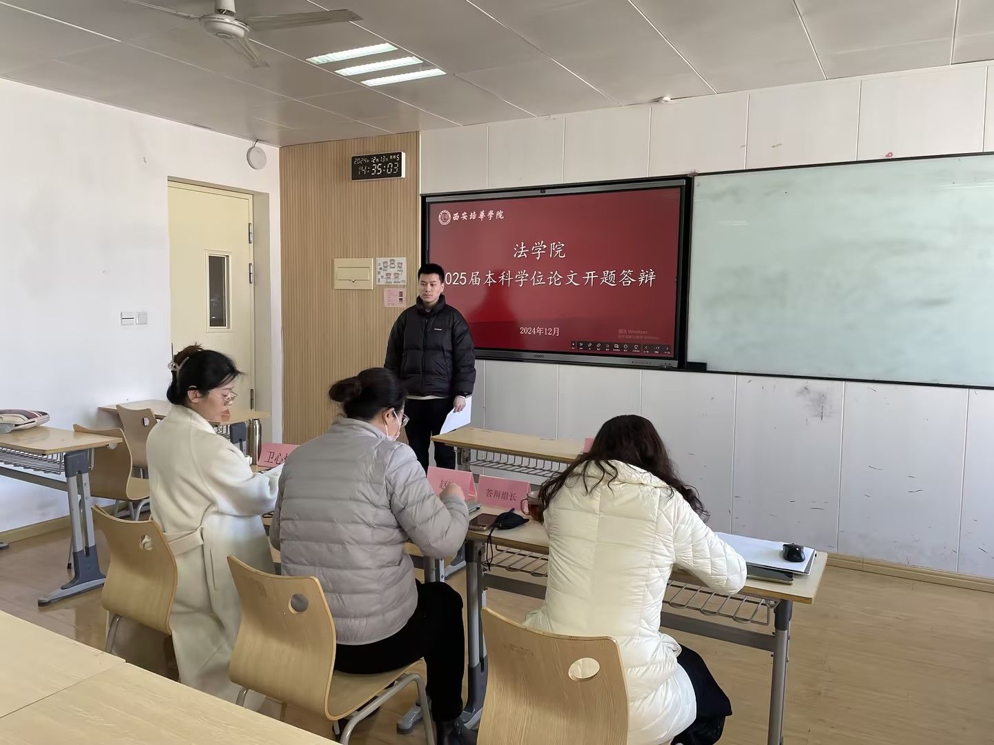 为了检验学生论文选题的意义和可行性,在学生后续的论文撰写工作中指明方向,根据学校《关于做好2025届本科毕业论文(设计)开题工作的通知》文件要求,法学院于2024年12月13日在格物楼1601-1608教室开展了2025届本科毕业论文开题答辩工作。