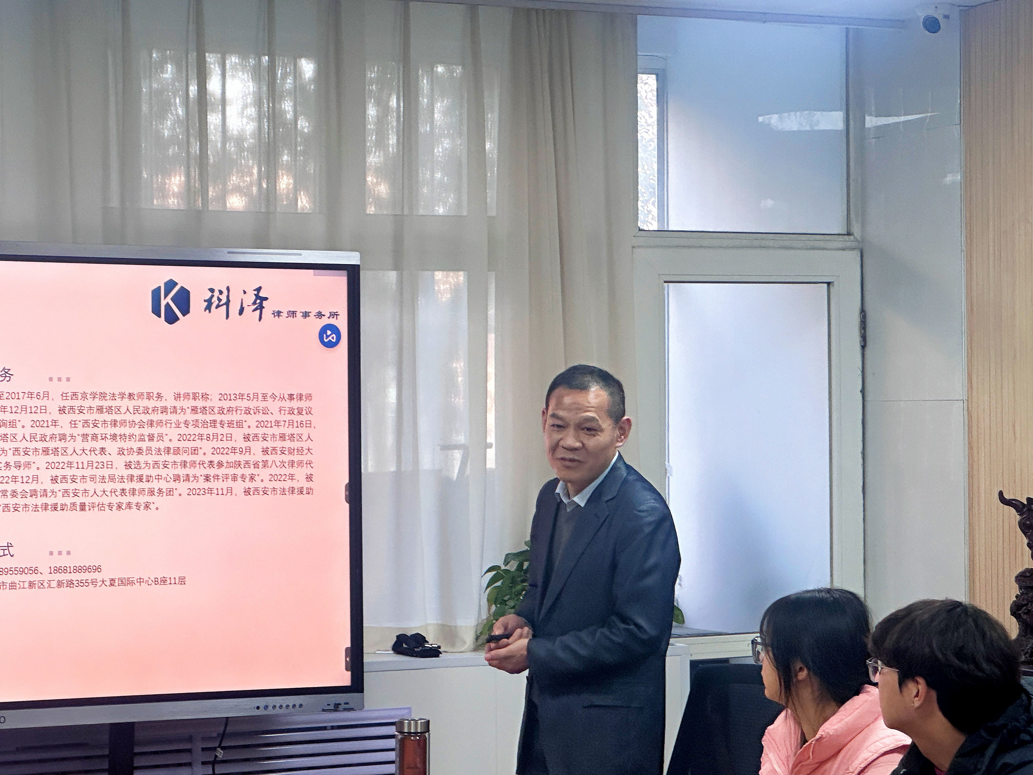 为促进产教融合,提升学生法律专业能力和思考能力,12月16日16:30,法学院于格物楼1116教室开展了职业规划与就业指导第六讲《以案说法:物业服务合同纠纷案》专题讲座。本次讲座特邀陕西科泽律师事务所执业律师赵旭东主讲,法学院私法教研室教师钱豆主持,2023级学生骨干参加。