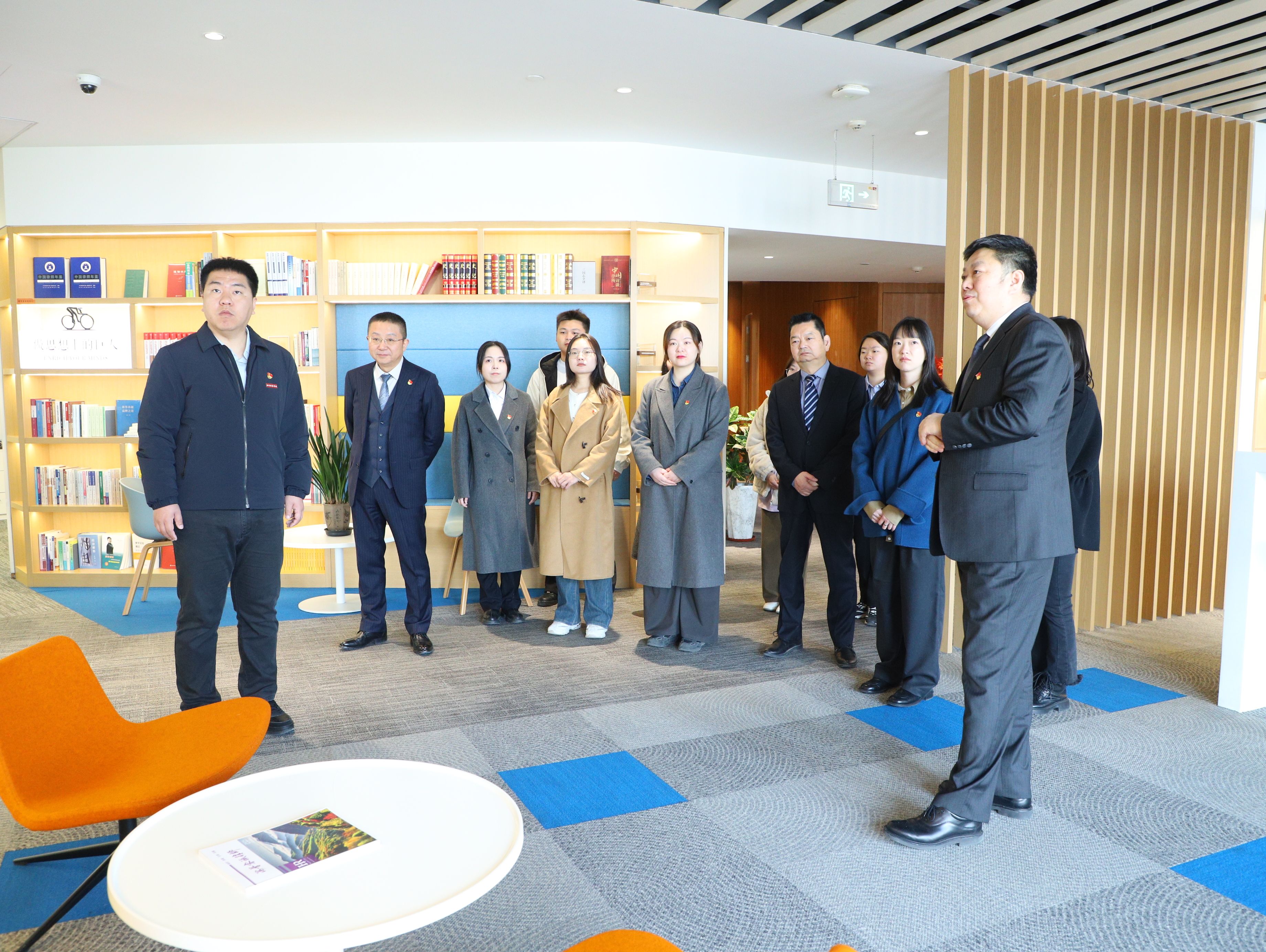 金韬副书记带领培华师生参观海普睿诚律师事务所党建、企业发展文化墙。参观过程中,金韬就律所的历史沿革、特色文化、办公环境等内容进行讲解。