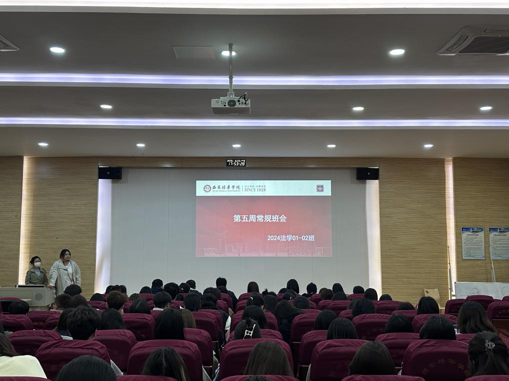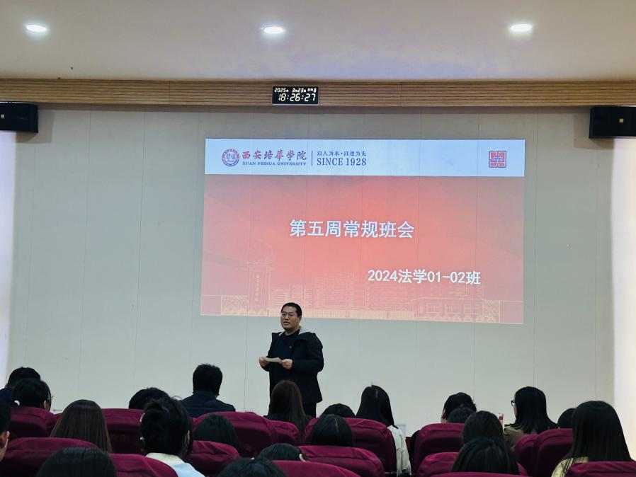 为进一步提升班会育人效果,推进班会课程化改革,推进学院班会建设提质增效,2025年3月23日,法学院开展了第五期班会“互听互评”系列活动。此次班会由辅导员李月主持,法学院党总支书记兼行政副院长韩斌、全体辅导员及2024级法学专业01-02班学生共同参与。
