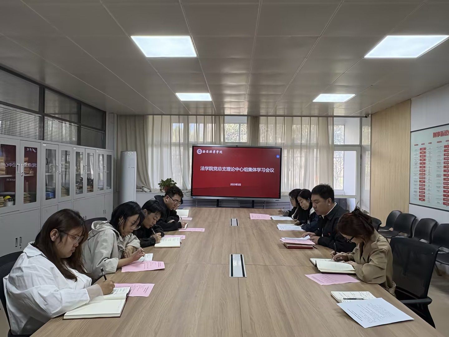 2025年3月25日上午,法学院党总支理论中心组于格物楼1116会议室开展了2025年第二次集体学习,本次集体学习由院党总支书记韩斌主持,学院理论学习中心组成员、教工党支部委员参加了学习。
