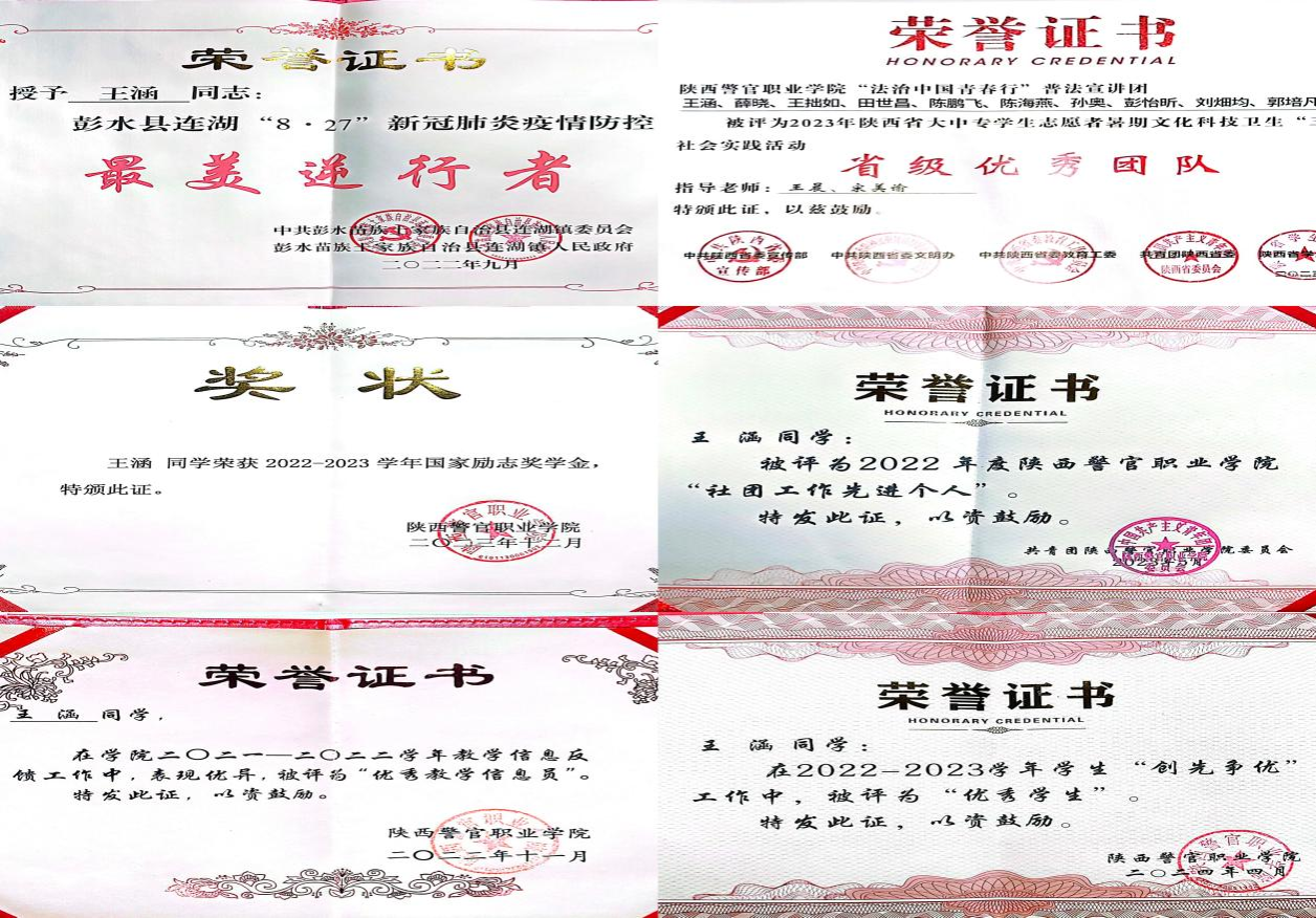 德法兼修,自强不息。王涵同学始终刻苦学习,努力掌握各项法律专业知识,不断提高自己的专业素养。每学期专业和综合成绩位列班级第一名,名列年级前茅。他认为:“学习成绩永远都只是分数的象征,人品才是最高的学位。无论过去在陕警院法律系还是在培华学院法学院的学习,都应着重提高自己的情商和修养,练就过硬才干,德才兼备,全面发展”,他被评为2022-2023年度中国大学生自强之星。
