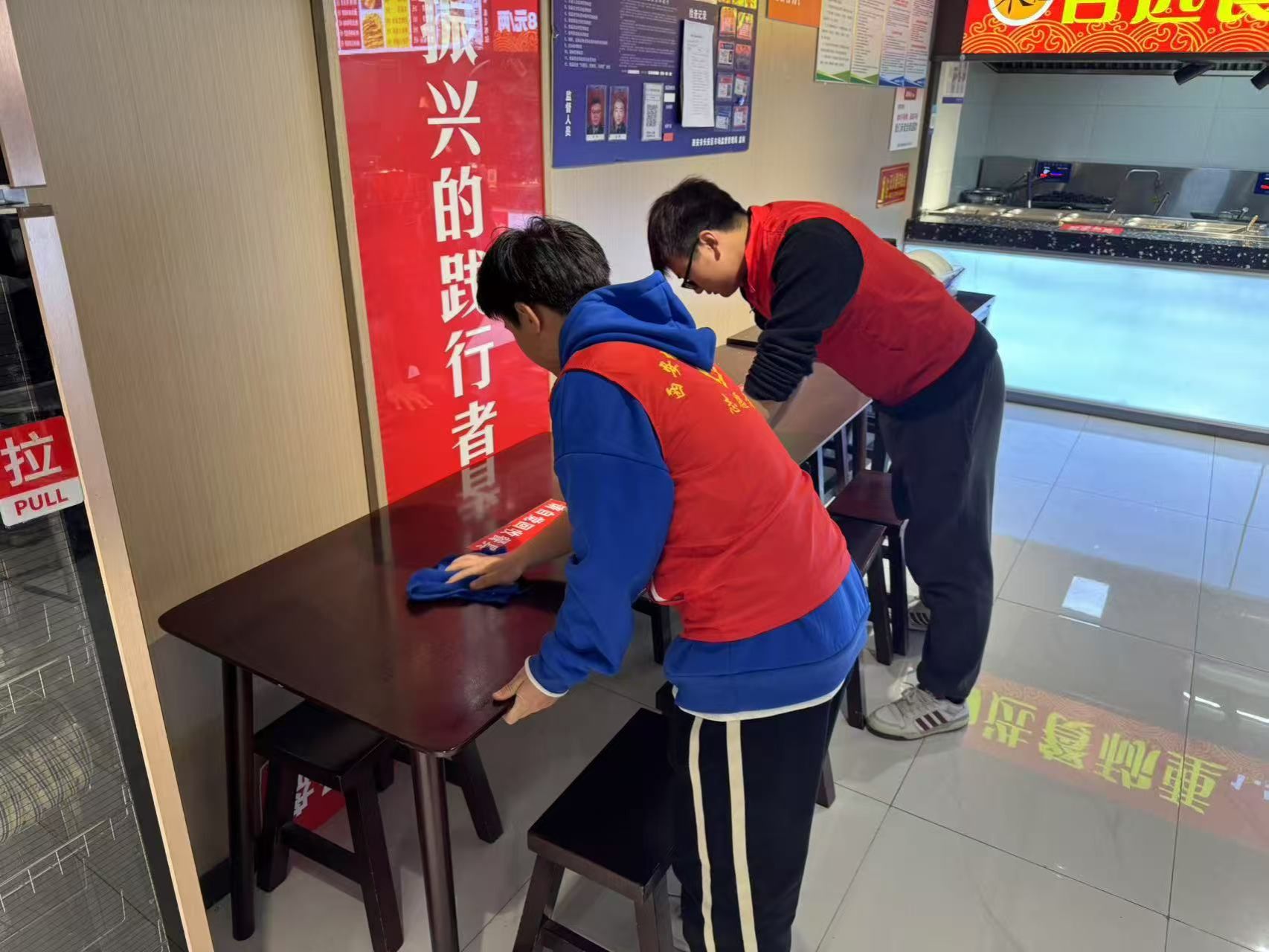 法学院师生以行动守护校园秩序,开展宣传栏清洁、校车清洁消毒、食堂文明引导等专项行动,累计规范非机动车停放60余辆,清洁校车8辆,回收餐盘300余份;联合保卫科升级车辆电子登记系统,新增停车标识8处,有效保障消防通道畅通。后勤部门评价其为“看得见的雷锋行动”。