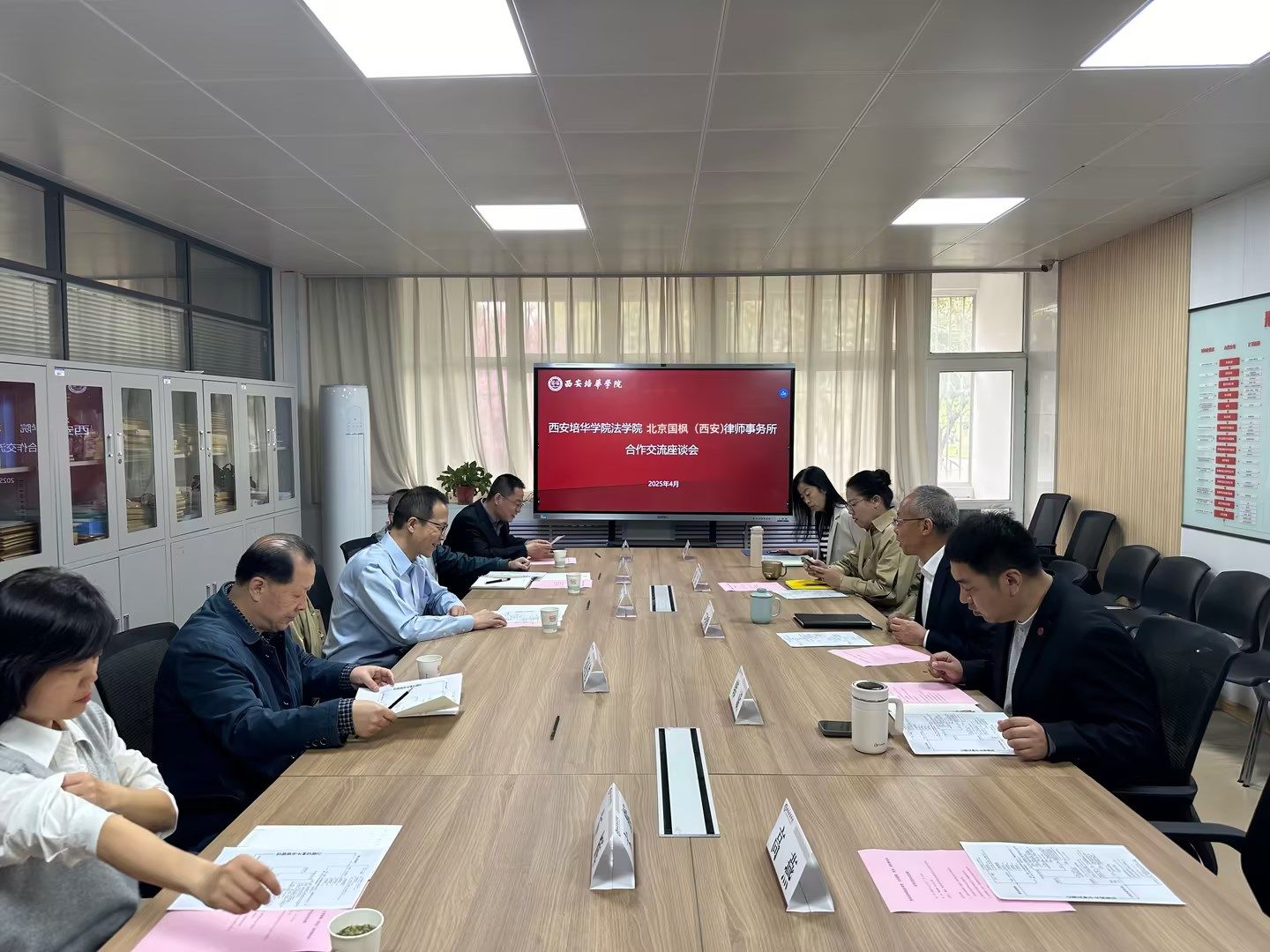 2025年4月9日上午9:30,西安培华学院法学院与北京国枫(西安)律师事务所合作交流座谈会在1116会议室举行。