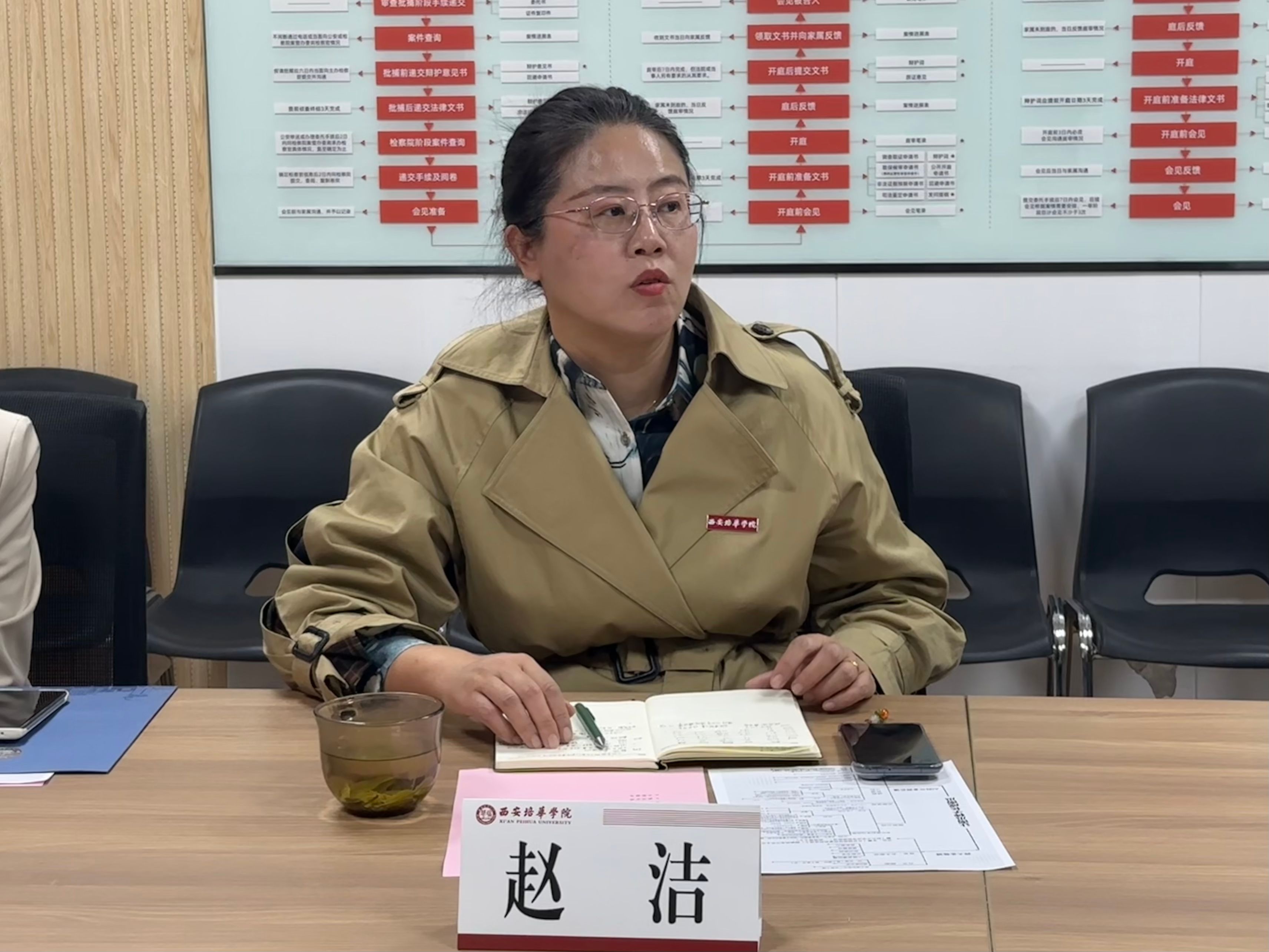 紧接着,赵洁副院长向来访嘉宾详细介绍了法学院目前的教学情况,包括课程设置、教学方法、实践教学环节等,让大家对学院教学工作有了更全面的了解。