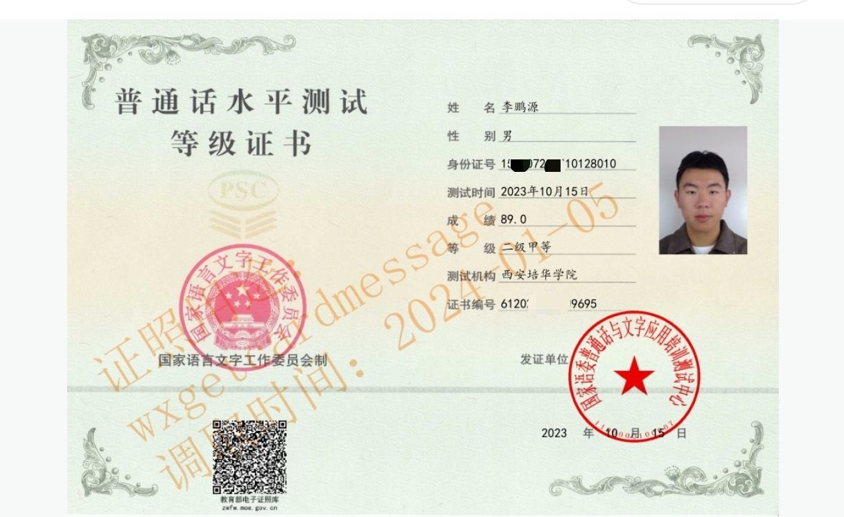 李鹏源同学始终坚信“不忘初心,方得始终”,保持着对于知识的严谨思考与深刻理解,在过去的两年大学生活中学习成绩保持年级前列并不断探索,通过全国英语四级,考取全国计算机等级二级证书、普通话二级甲等证书、C1驾驶执照等。